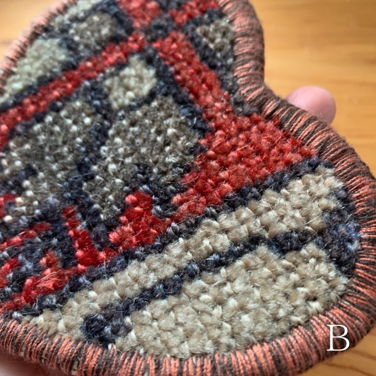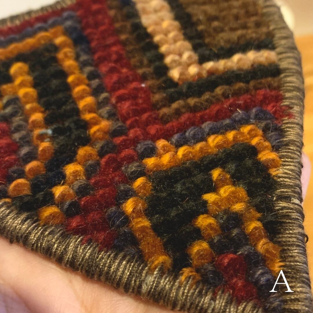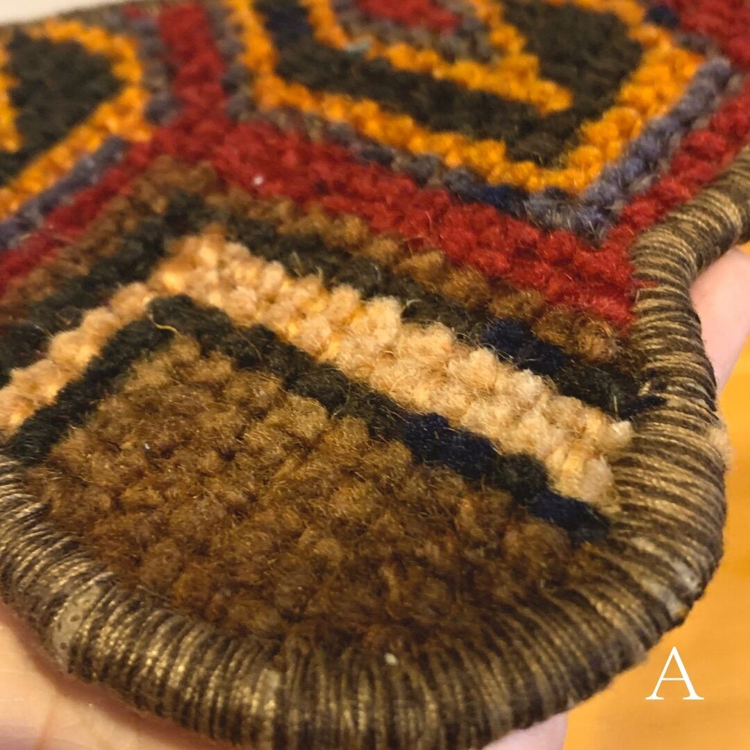 ※何十年もの間に渡って大切に使用されてきたヴィンテージラグを切り取り作られております。