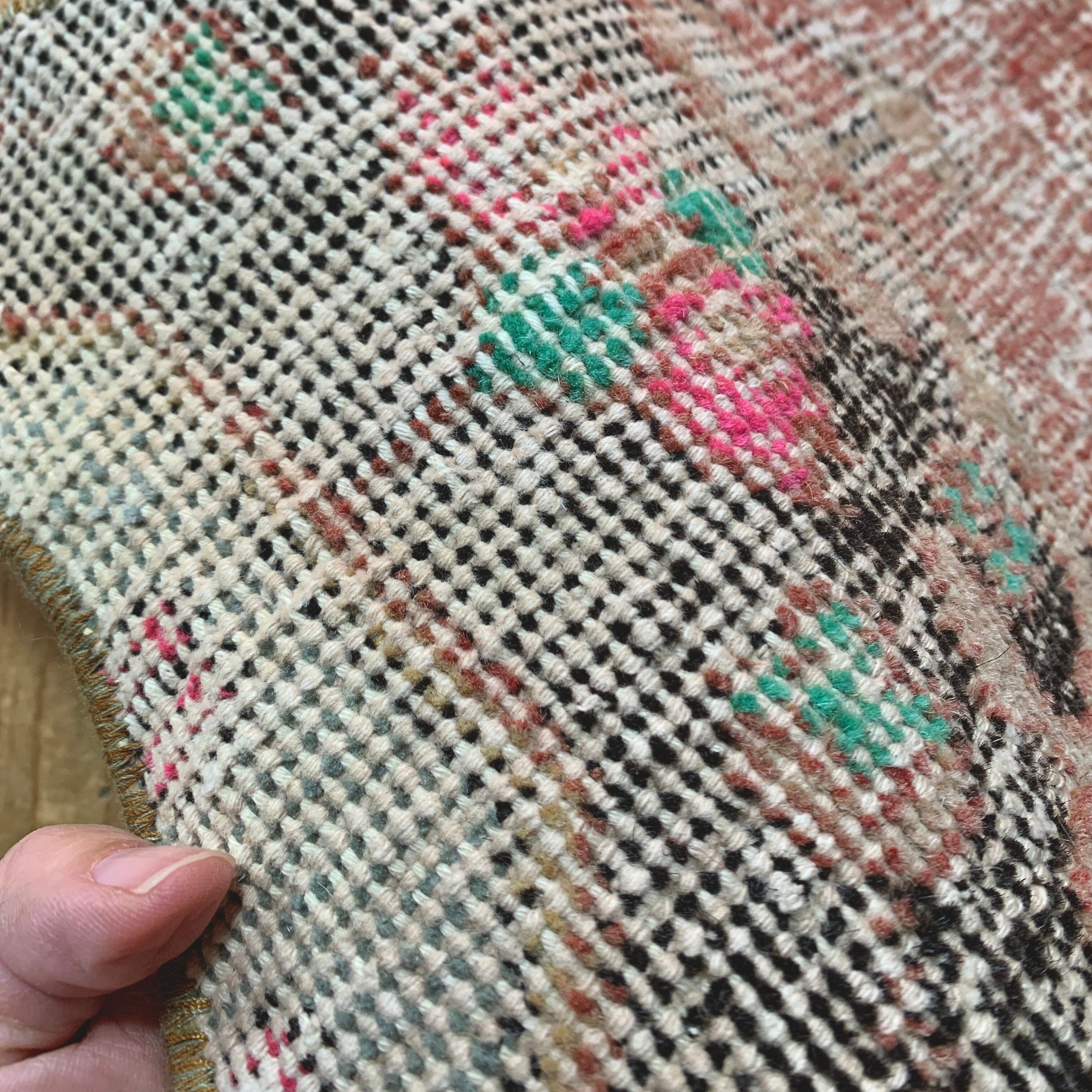 ※当店のパッチワークラグは、全て何十年もの間に渡って大切に使用されてきたヴィンテージラグを切り取り、手仕事で繋ぎ合わせて作られております。