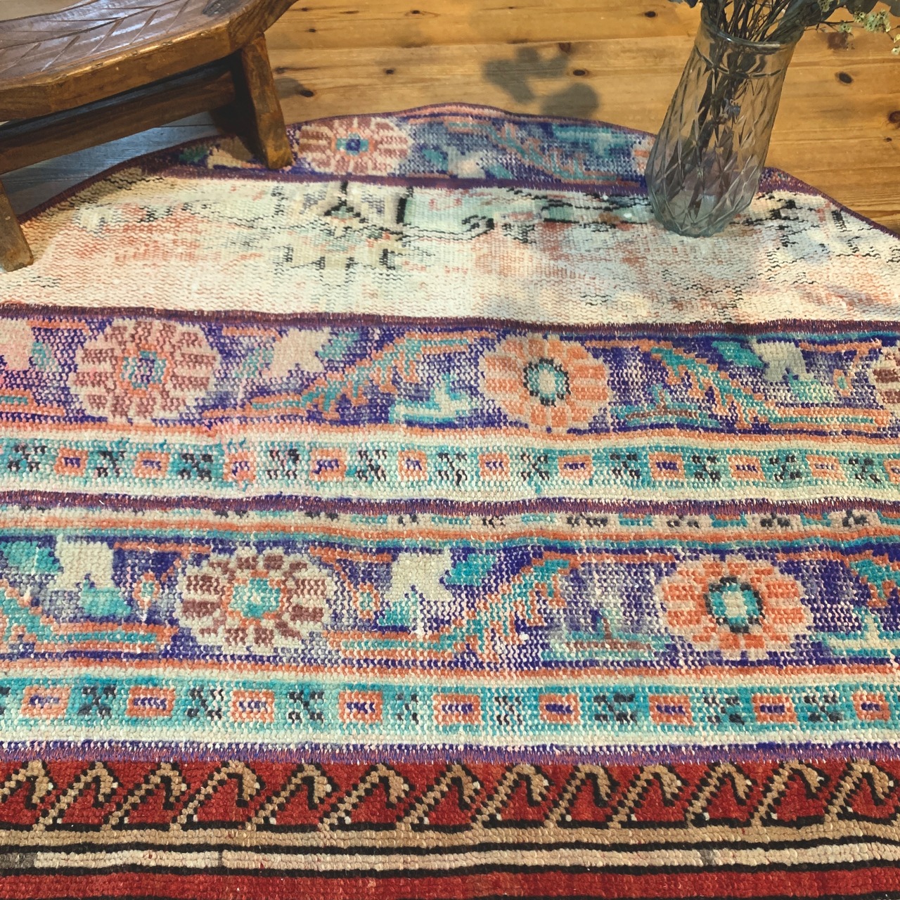 ※当店のパッチワークラグは、全て何十年もの間に渡って大切に使用されてきたヴィンテージラグを切り取り、手仕事で繋ぎ合わせて作られております。