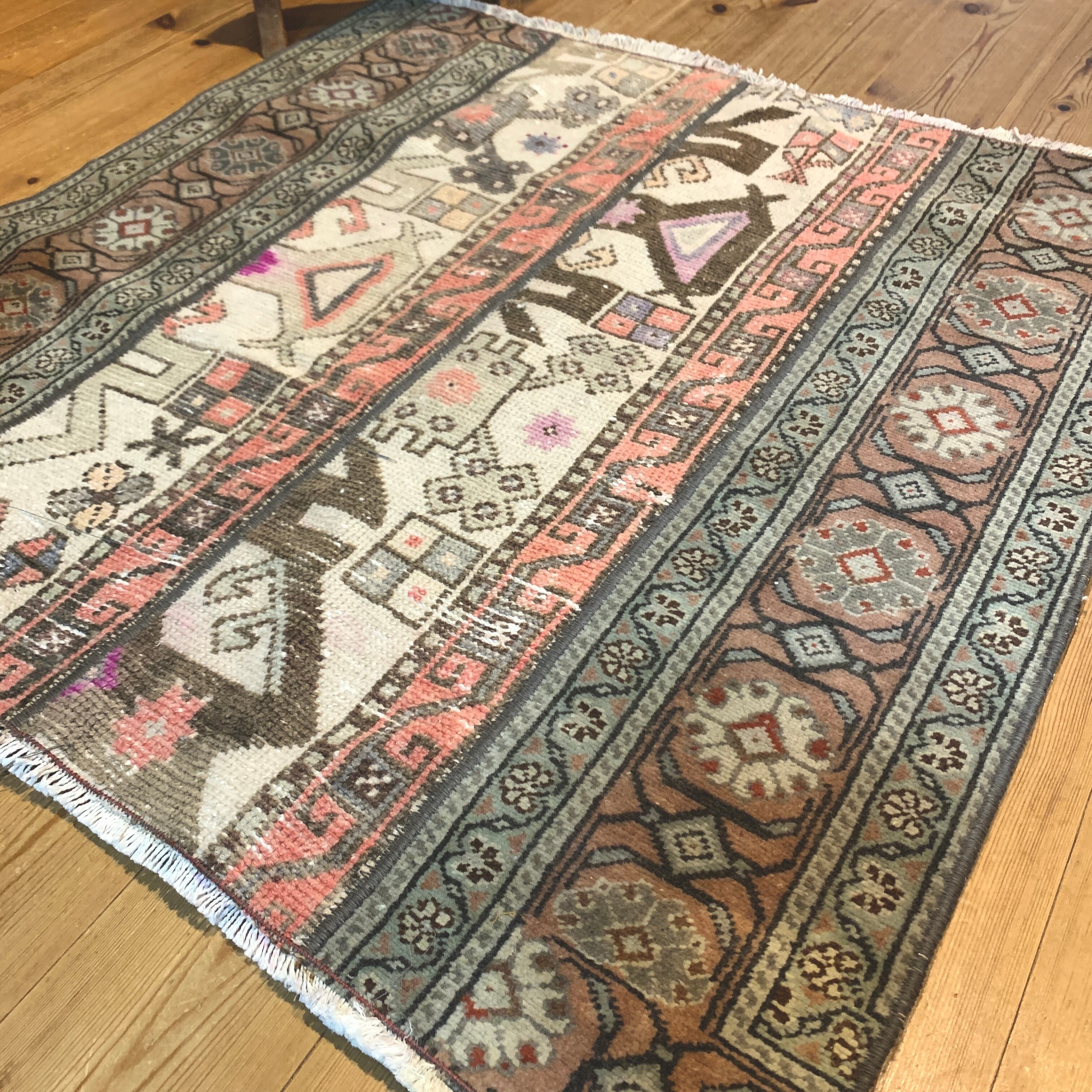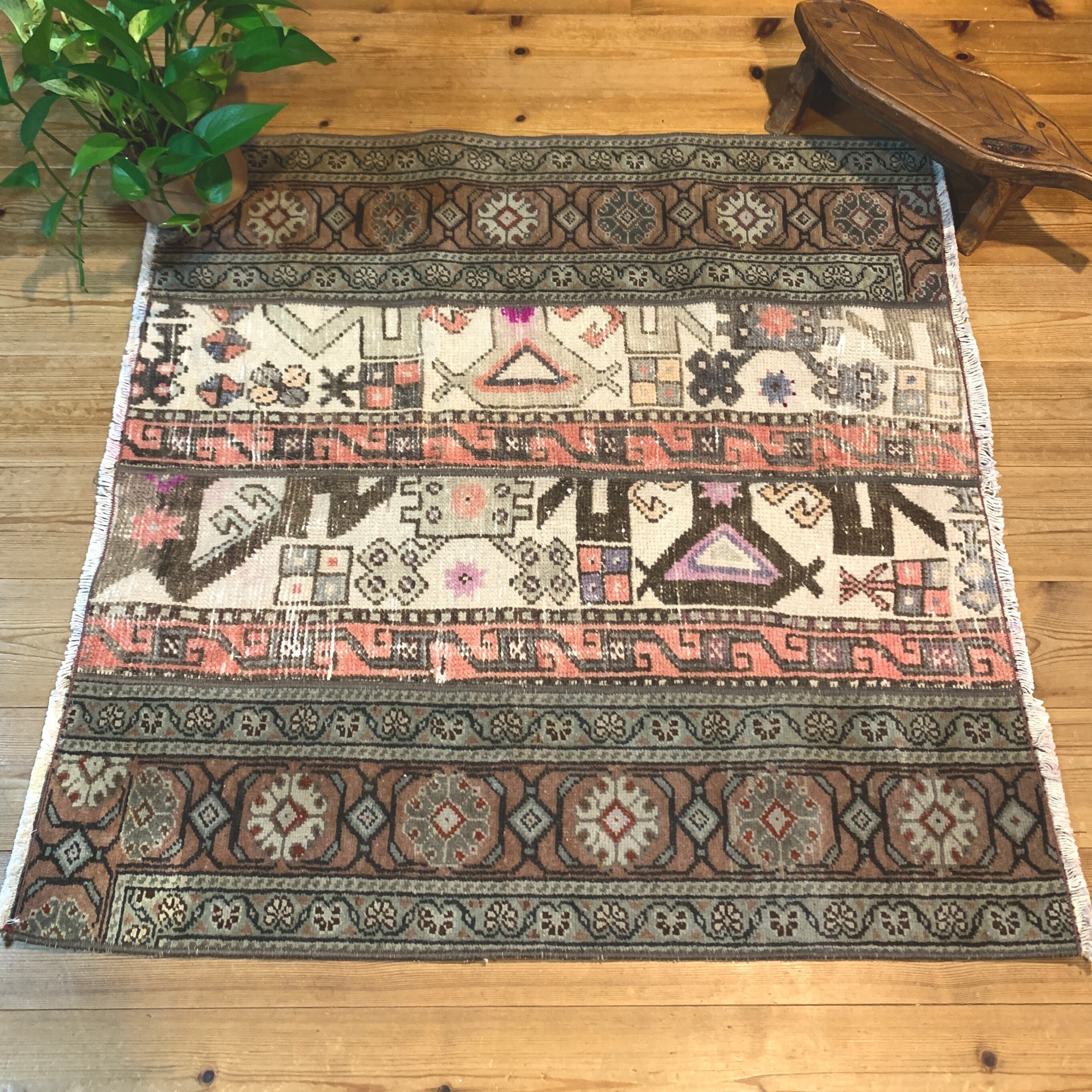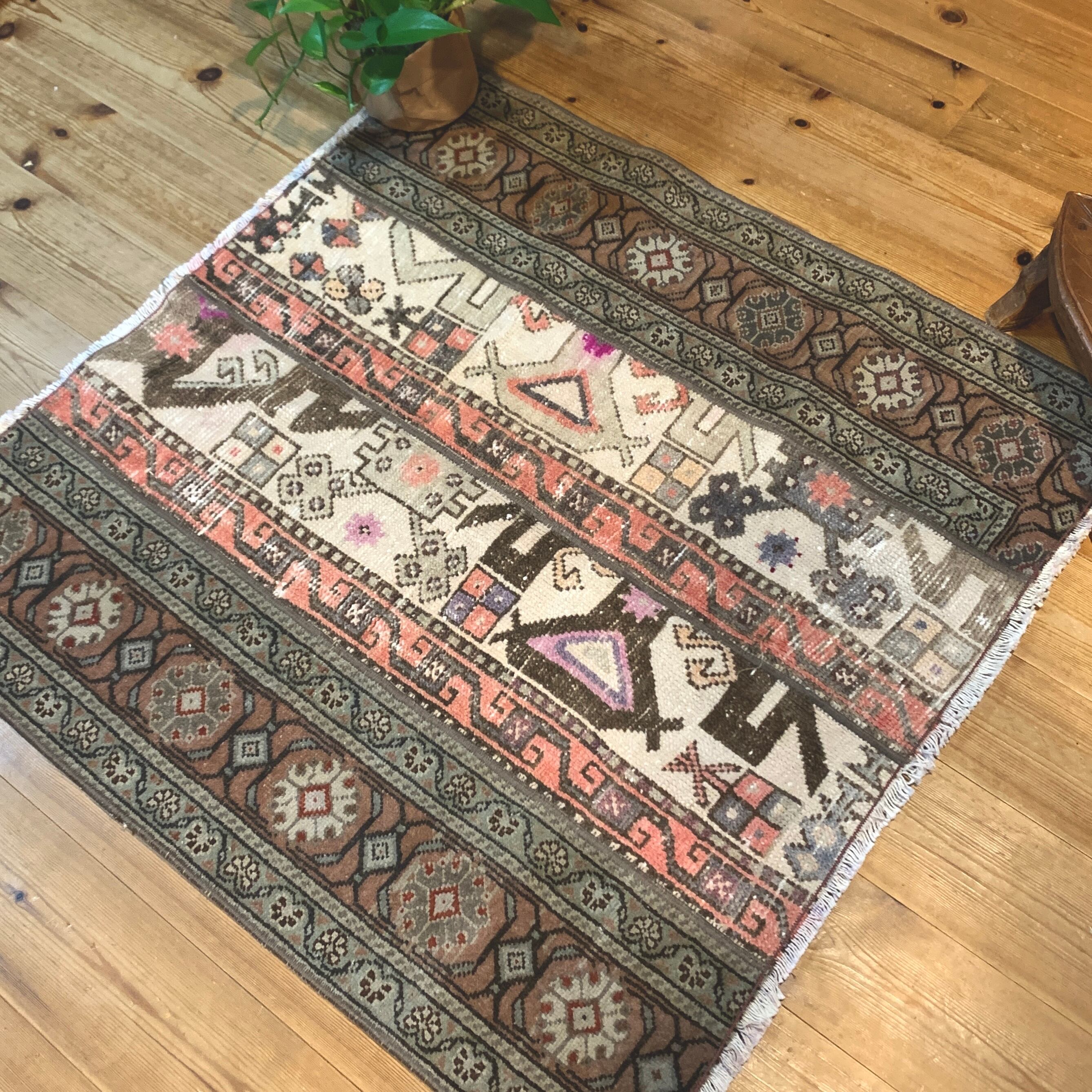 ※当店のパッチワークラグは、全て何十年もの間に渡って大切に使用されてきたヴィンテージラグを切り取り、手仕事で繋ぎ合わせて作られております。