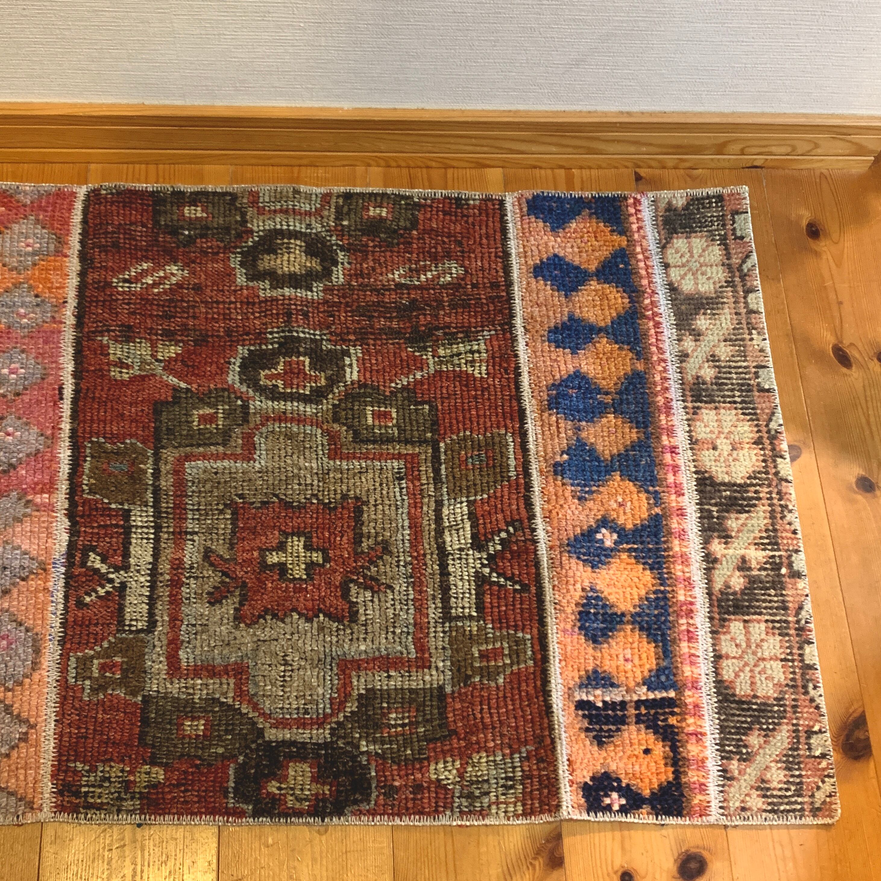 ※当店のパッチワークラグは、全て何十年もの間に渡って大切に使用されてきたヴィンテージラグを切り取り、手仕事で繋ぎ合わせて作られております。
