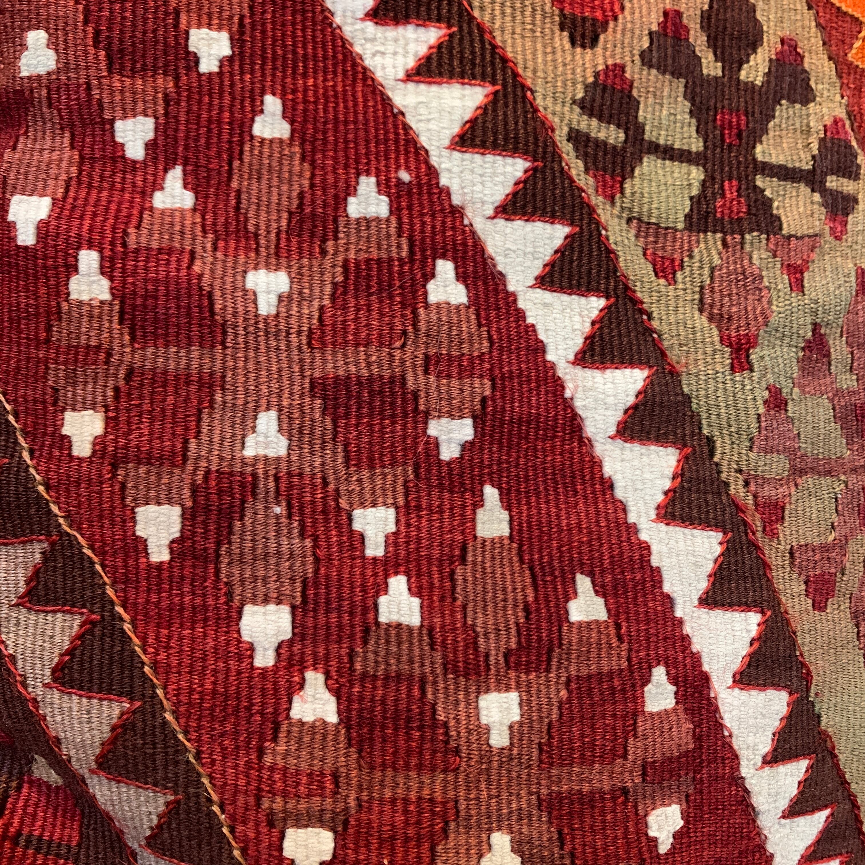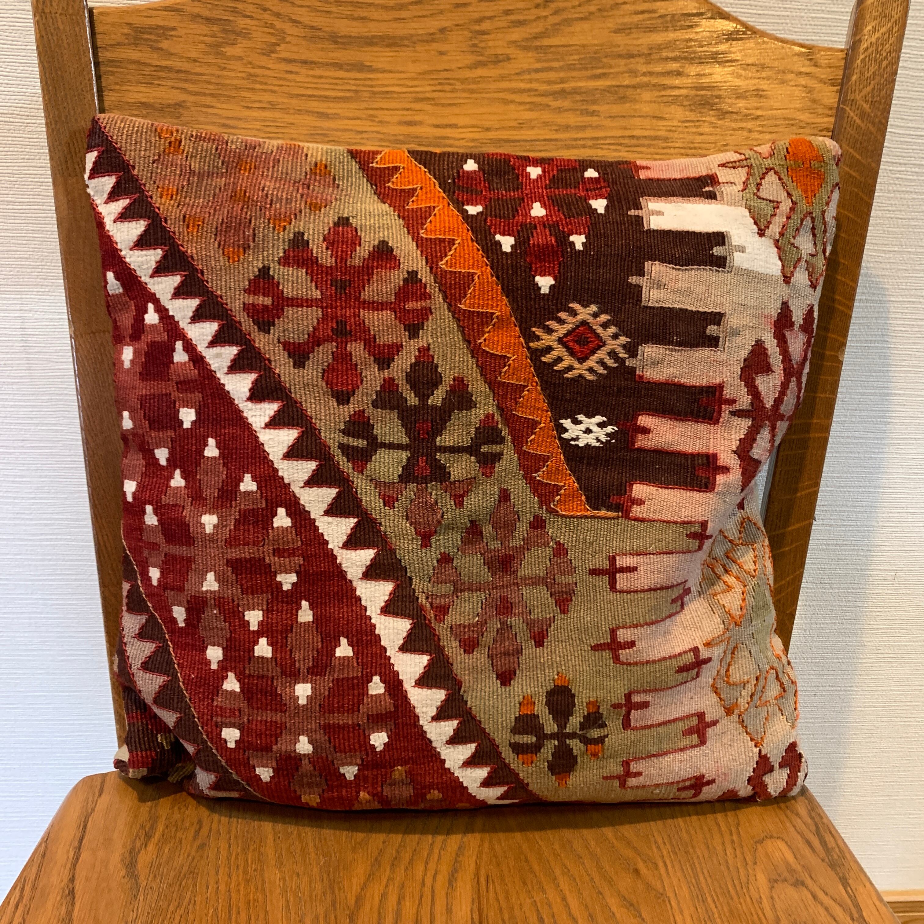 ※当店のクッションカバーは、何十年もの間に渡って大切に使用されてきたオールドキリムグを切り取り、作られております。
