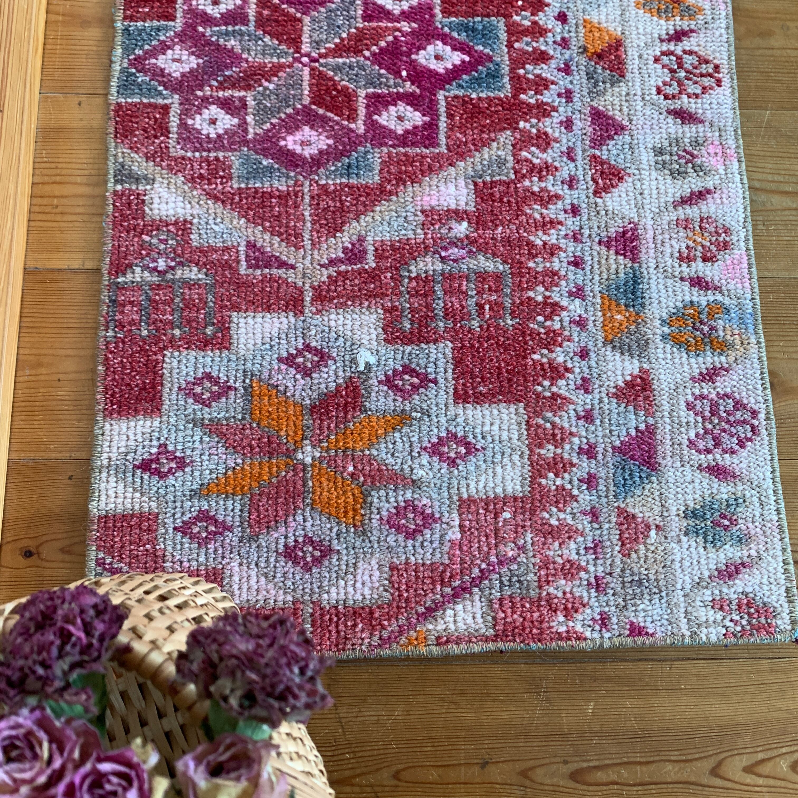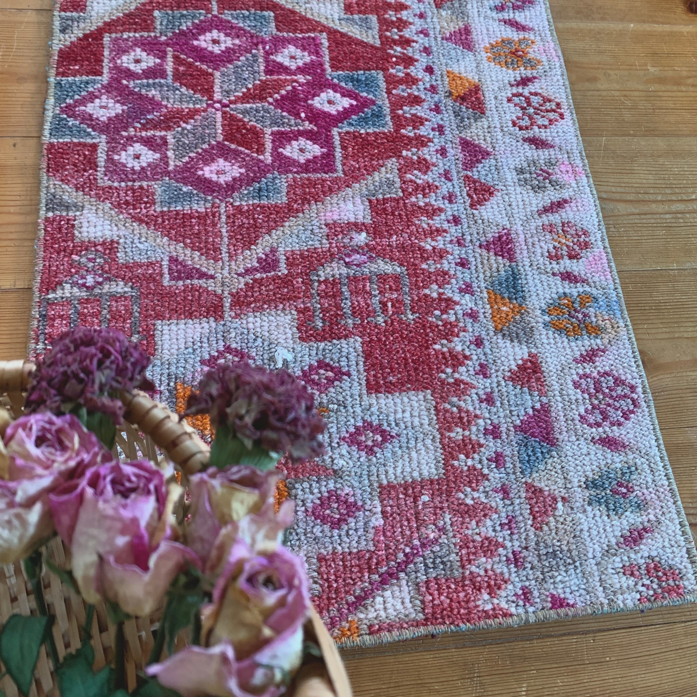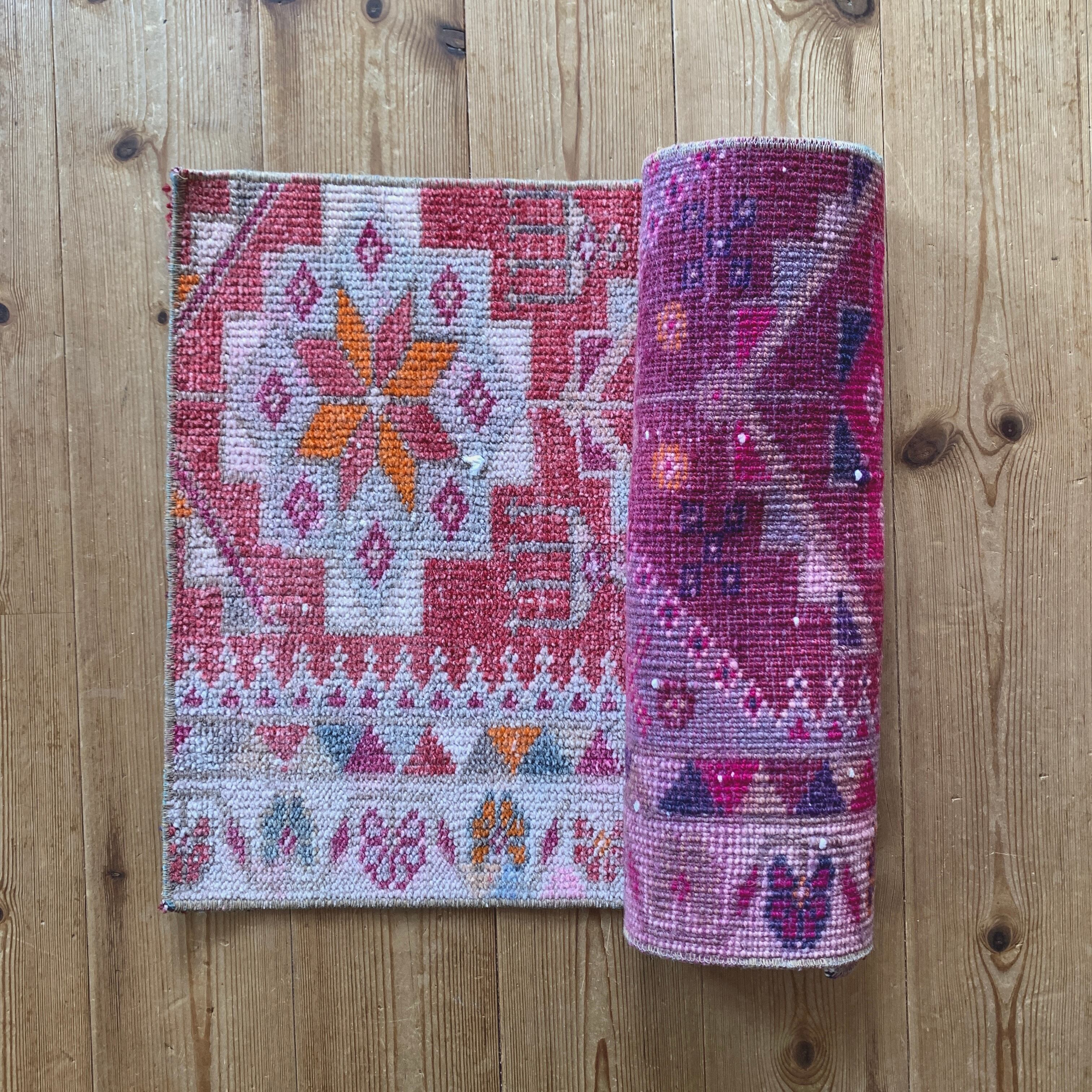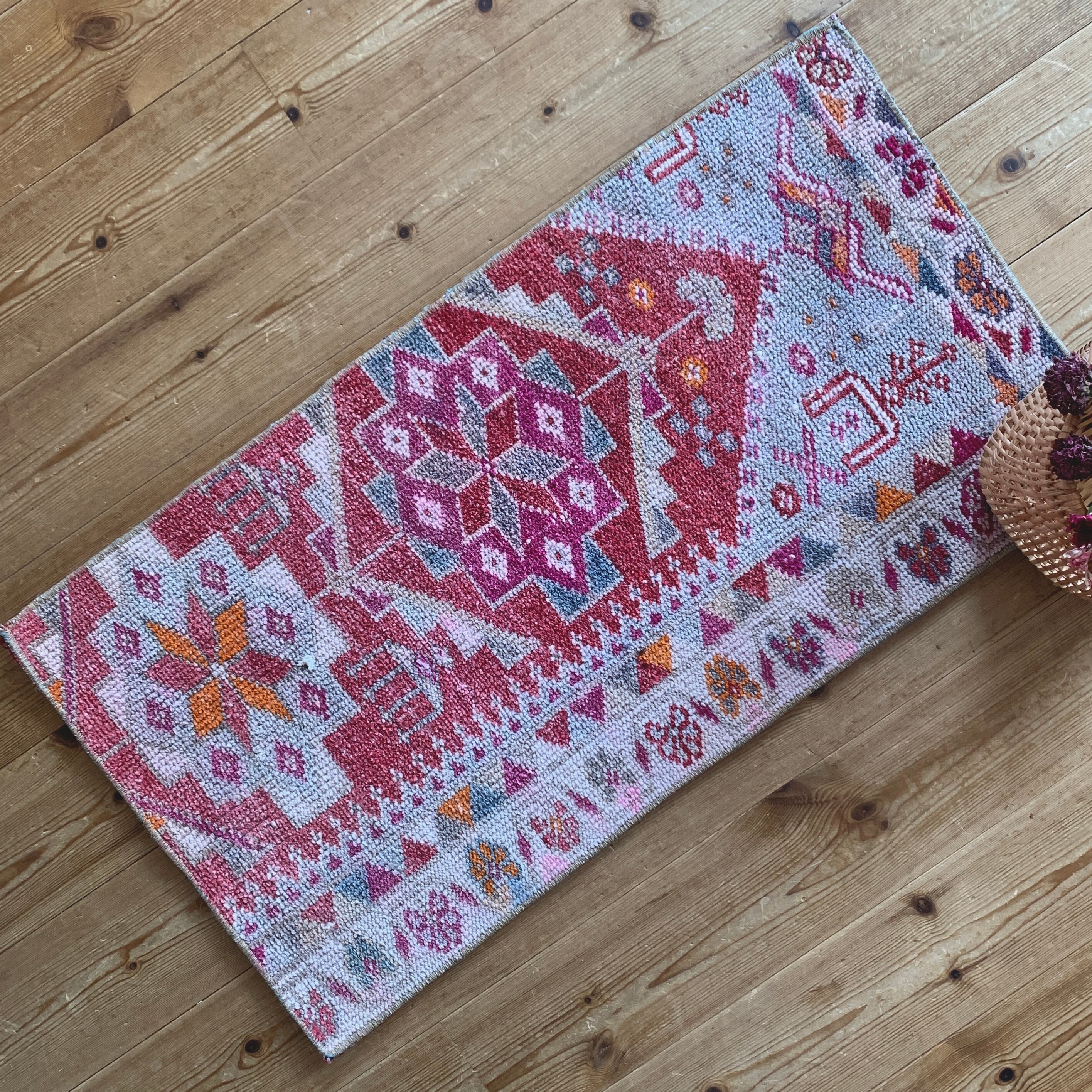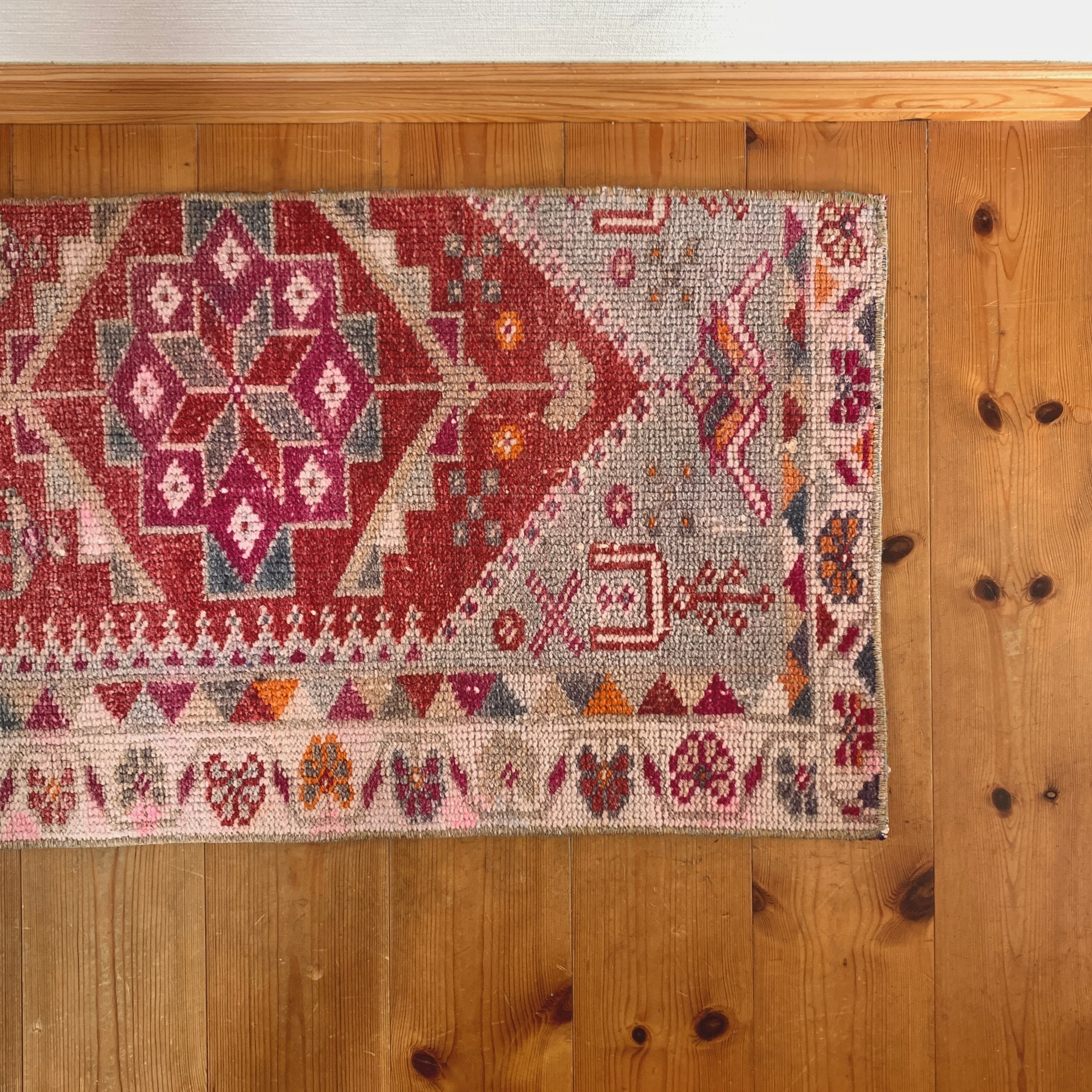 ヴィンテージトルコラグ ピンク レッド オレンジ