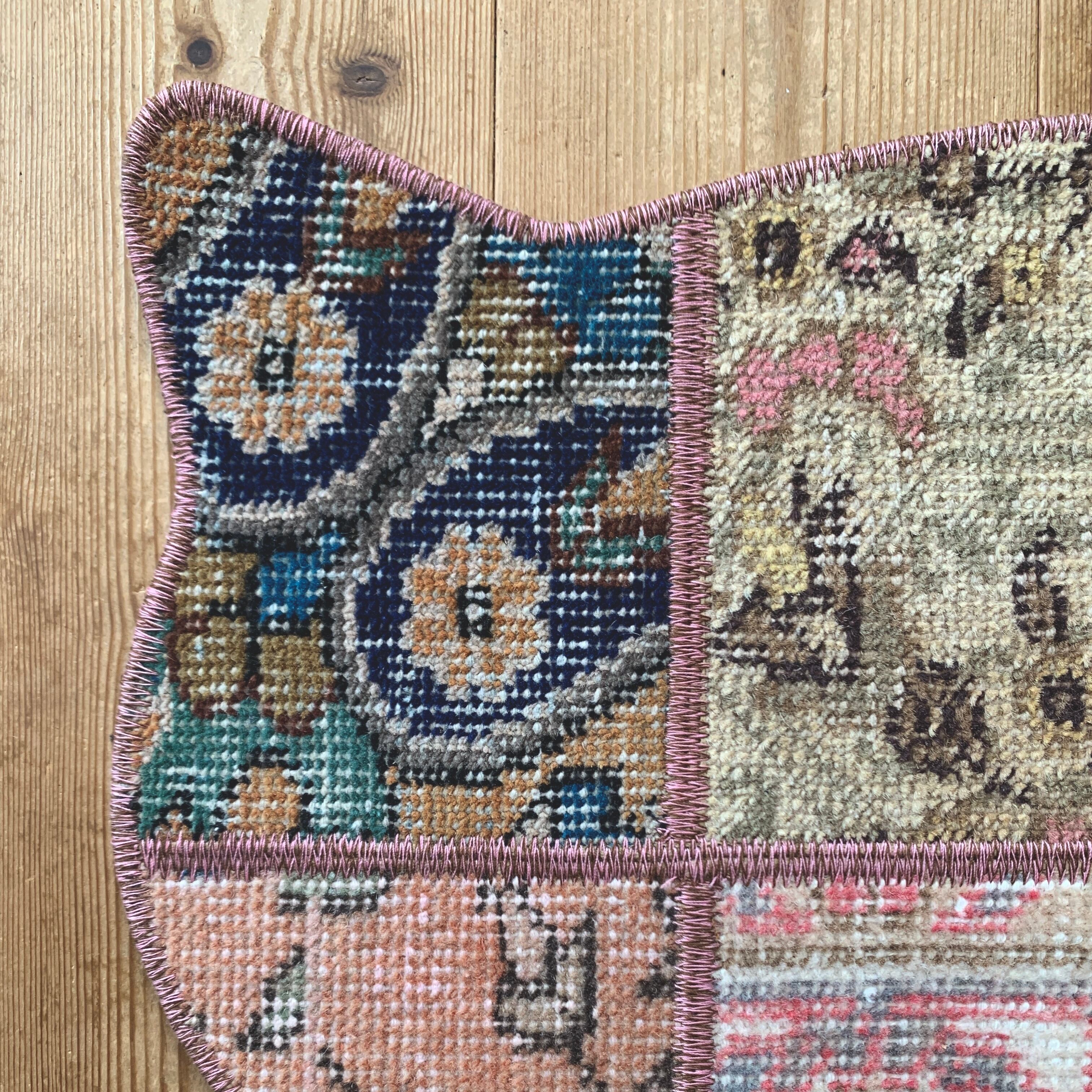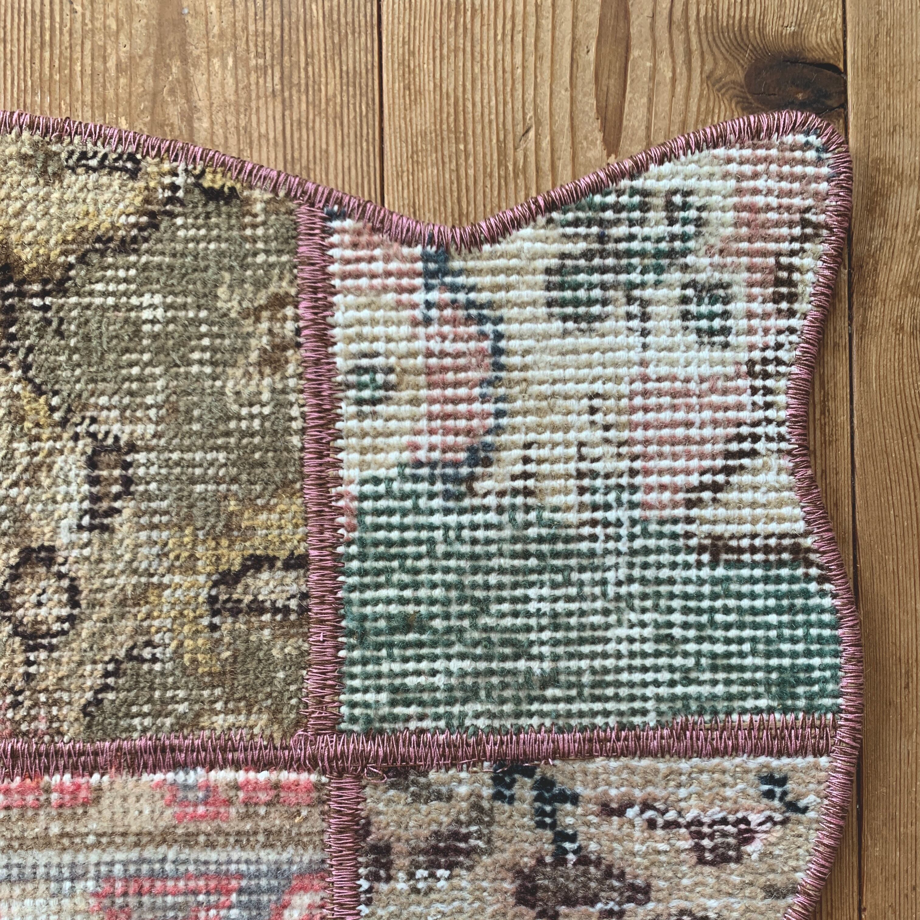 ※当店のパッチワークラグは、全て何十年もの間に渡って大切に使用されてきたヴィンテージラグを切り取り、手仕事で繋ぎ合わせて作られております。