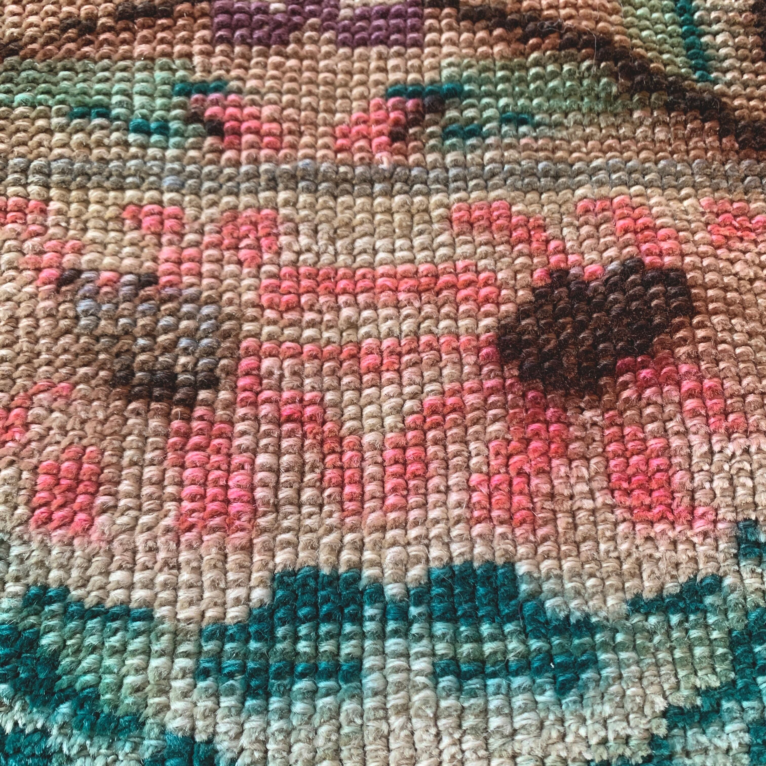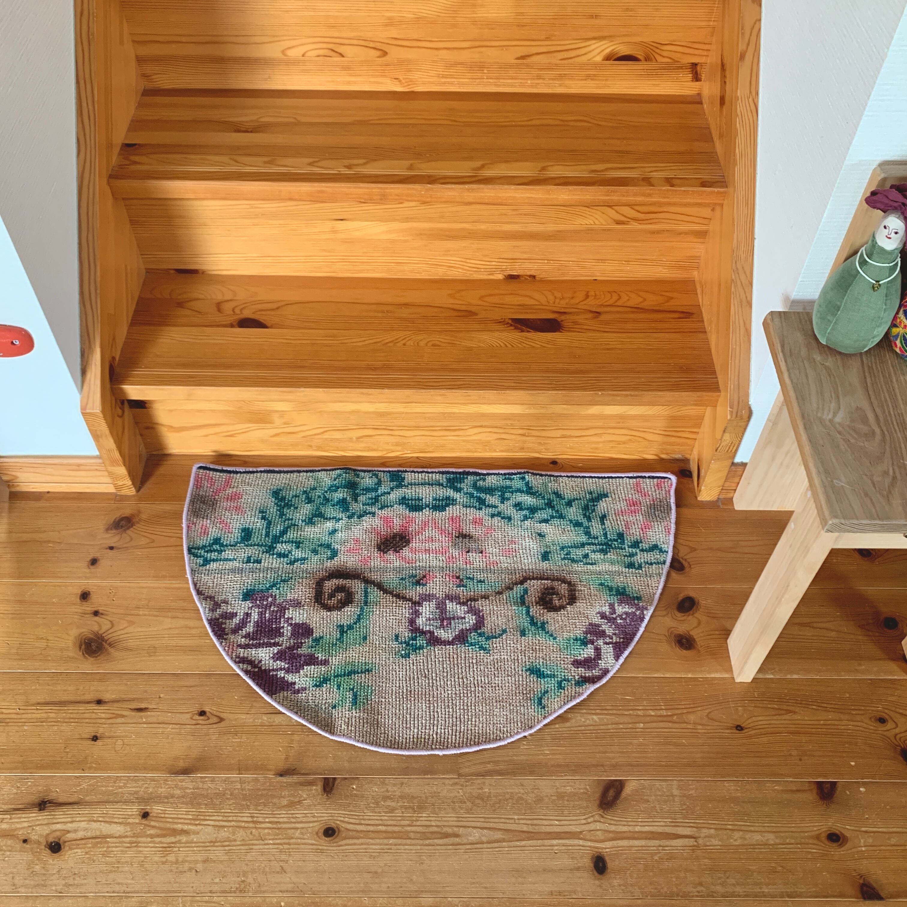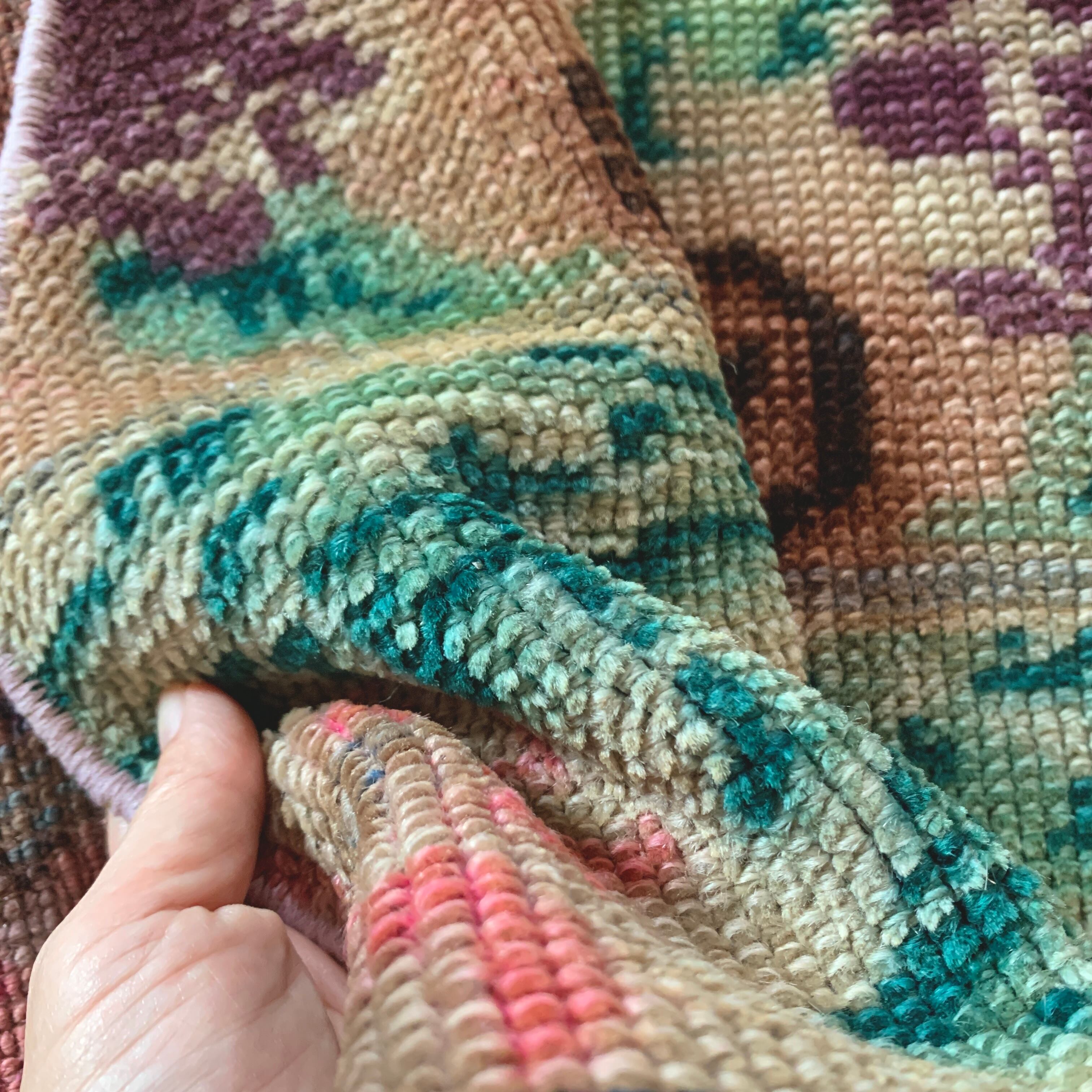 ※当店のパッチワークラグは、全て何十年もの間に渡って大切に使用されてきたヴィンテージラグを切り取り、手仕事で繋ぎ合わせて作られております。