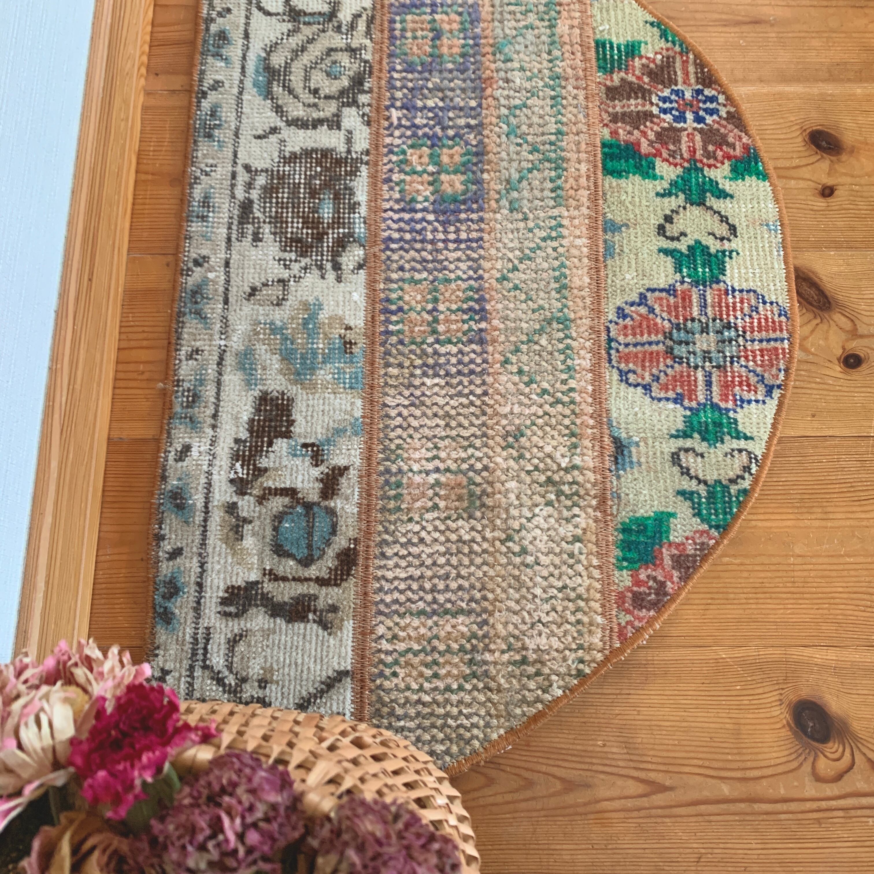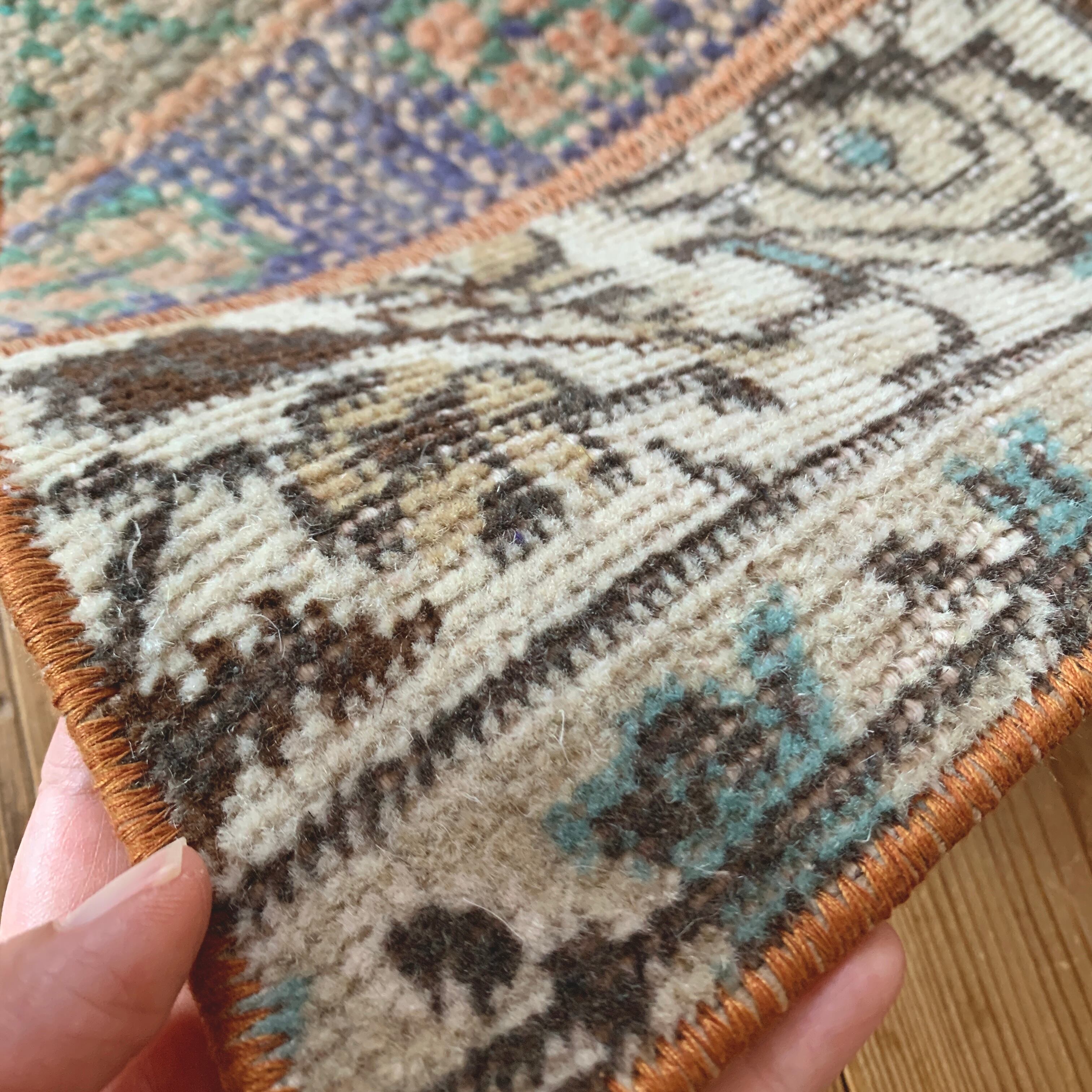 ※当店のパッチワークラグは、全て何十年もの間に渡って大切に使用されてきたヴィンテージラグを切り取り、手仕事で繋ぎ合わせて作られております。