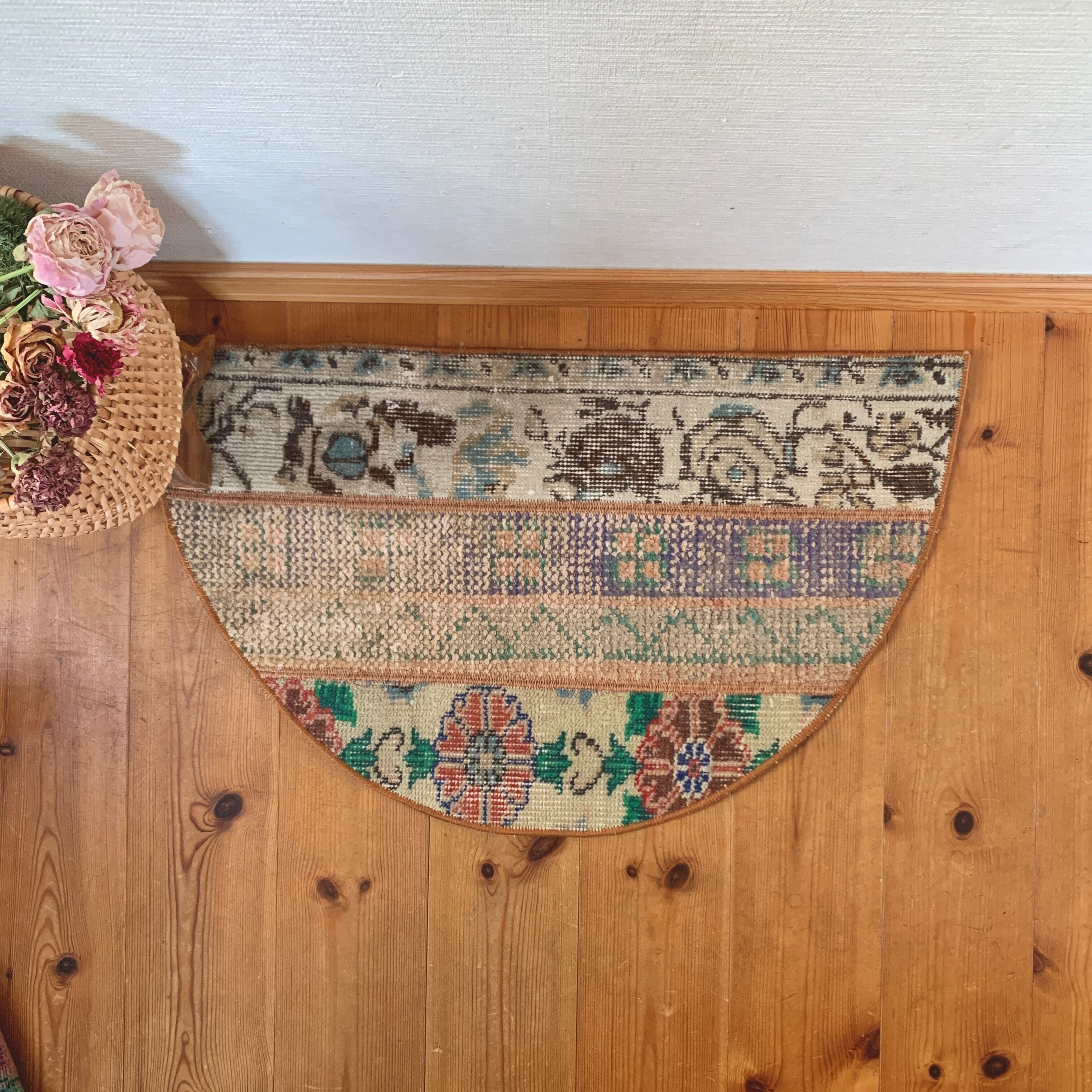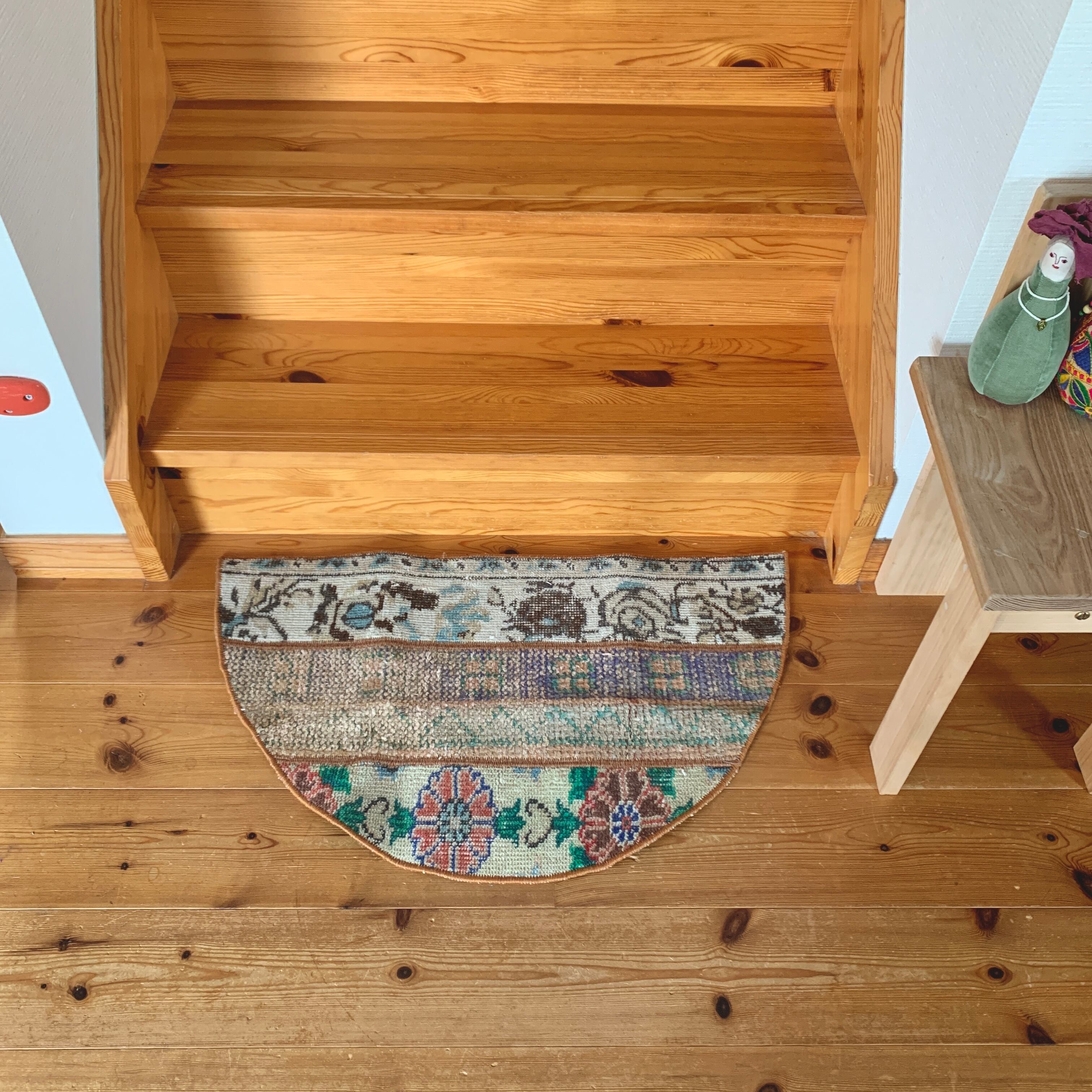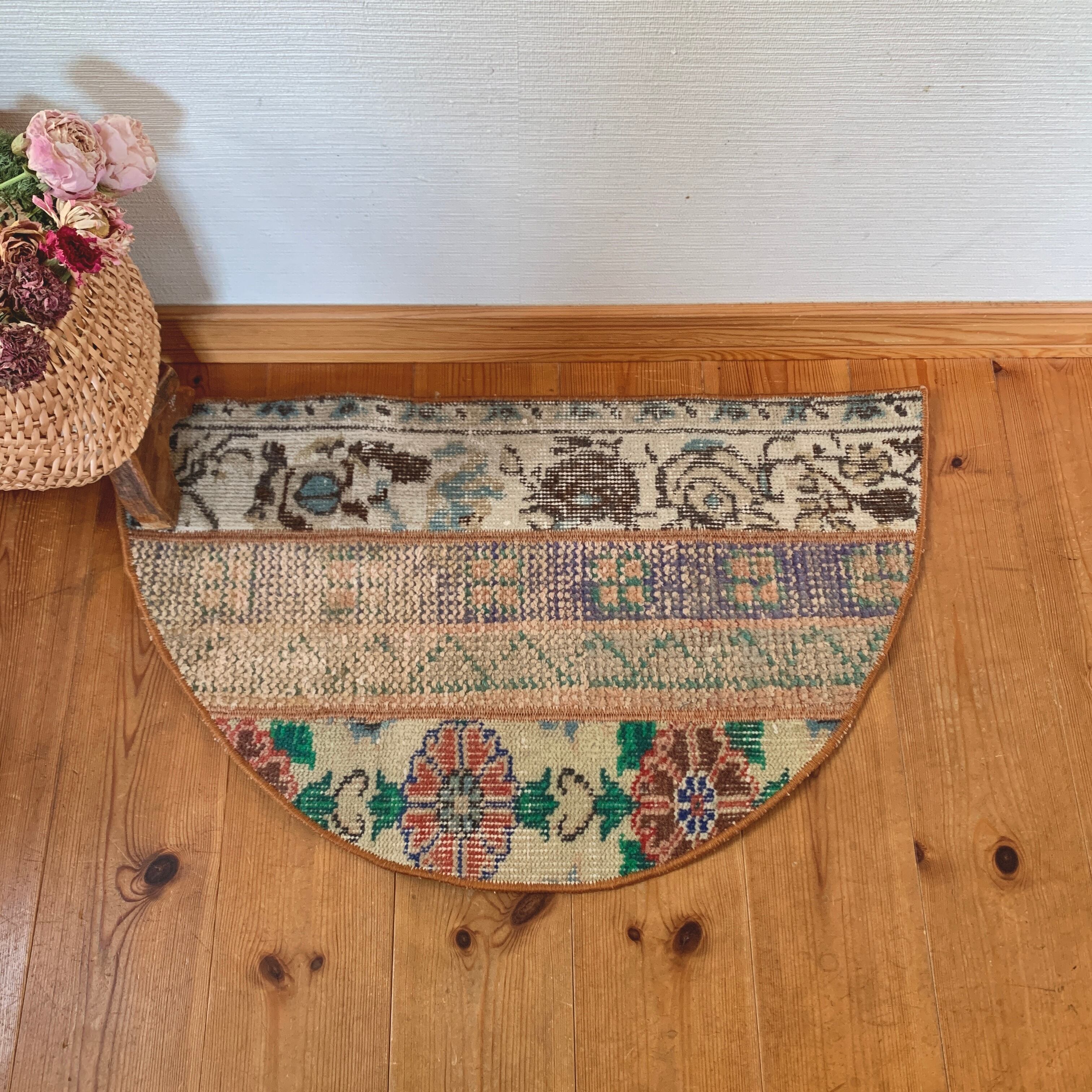 半円ラグは、玄関や壁際、階段下など使いやすいサイズです。