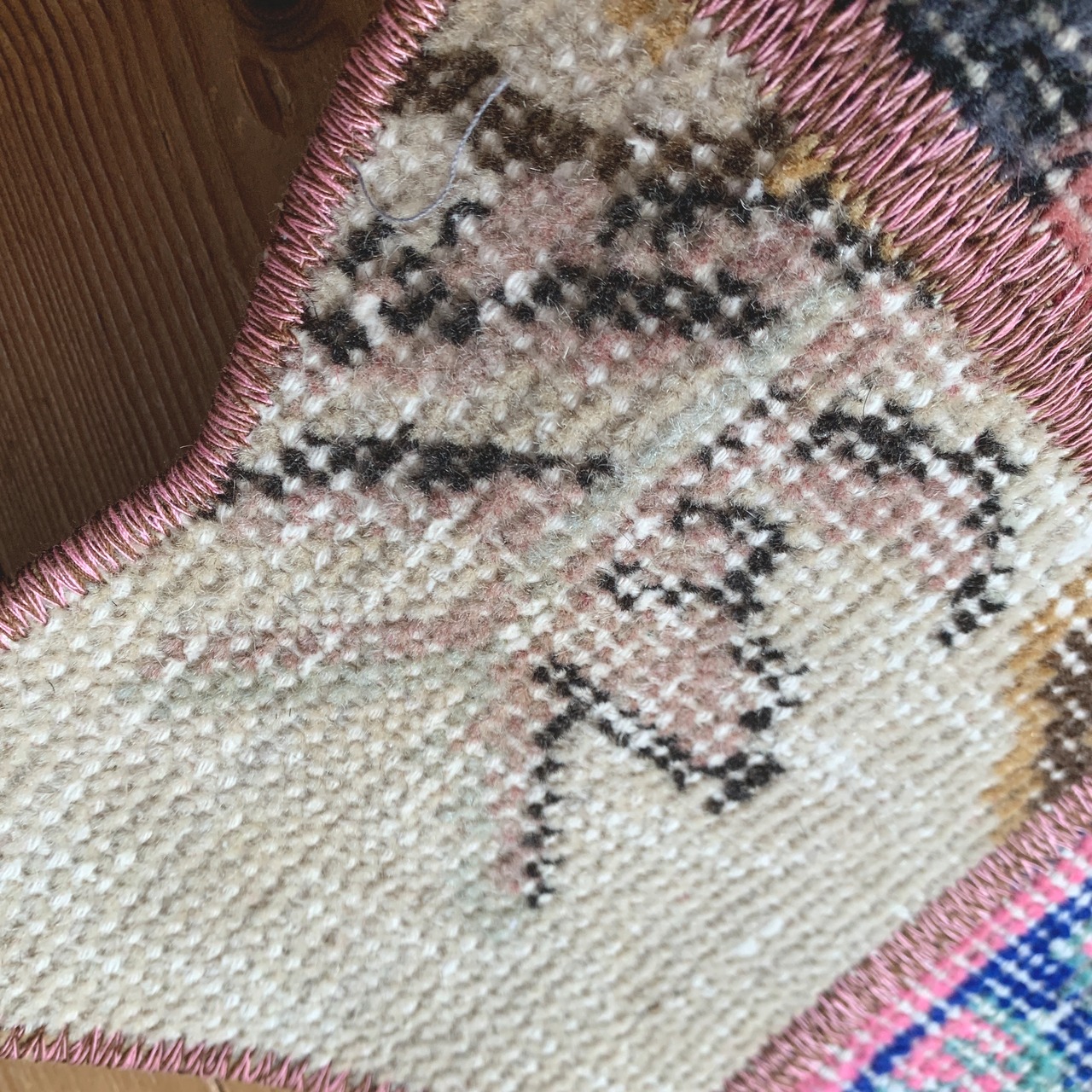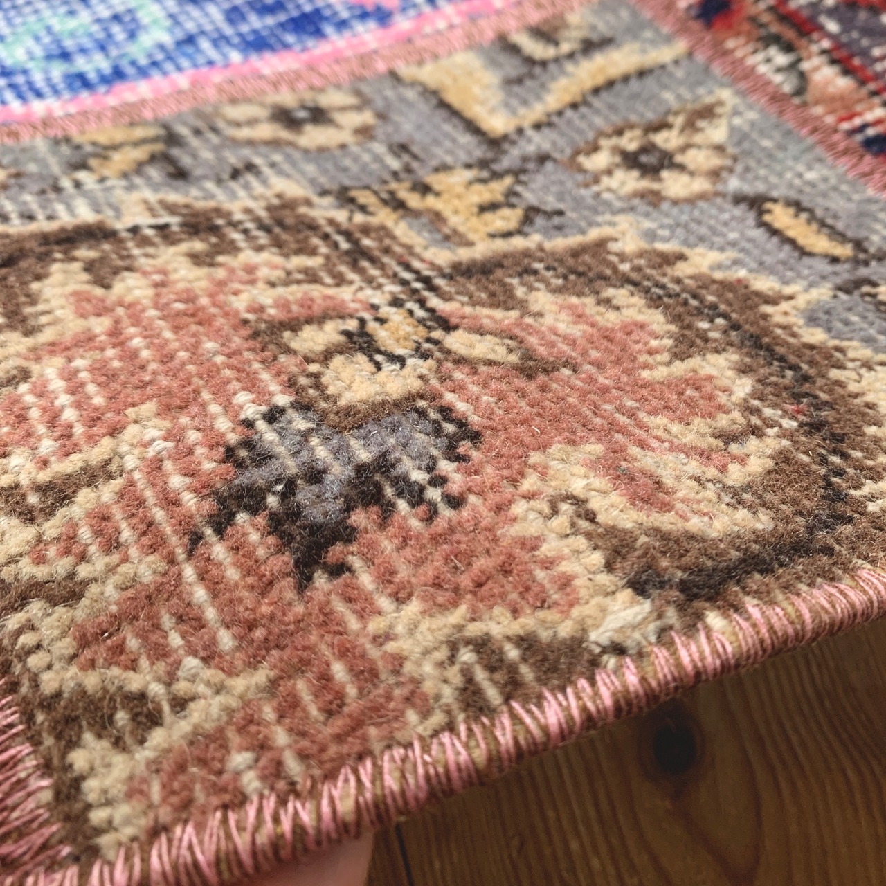 ※当店のパッチワークラグは、全て何十年もの間に渡って大切に使用されてきたヴィンテージラグを切り取り、手仕事で繋ぎ合わせて作られております。