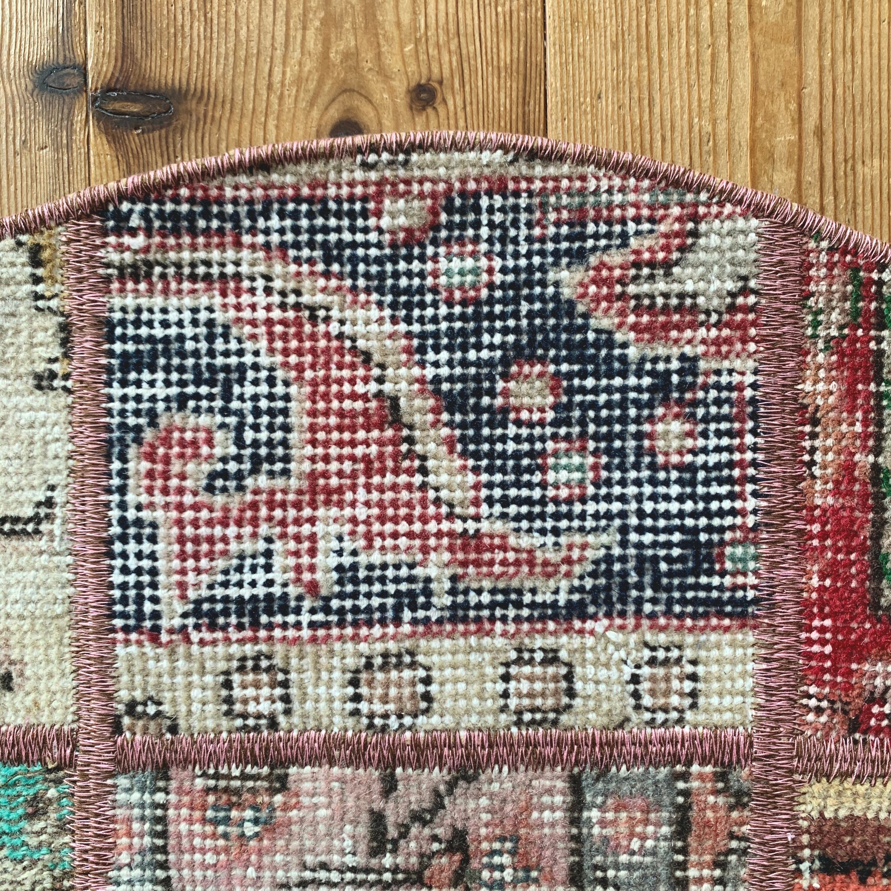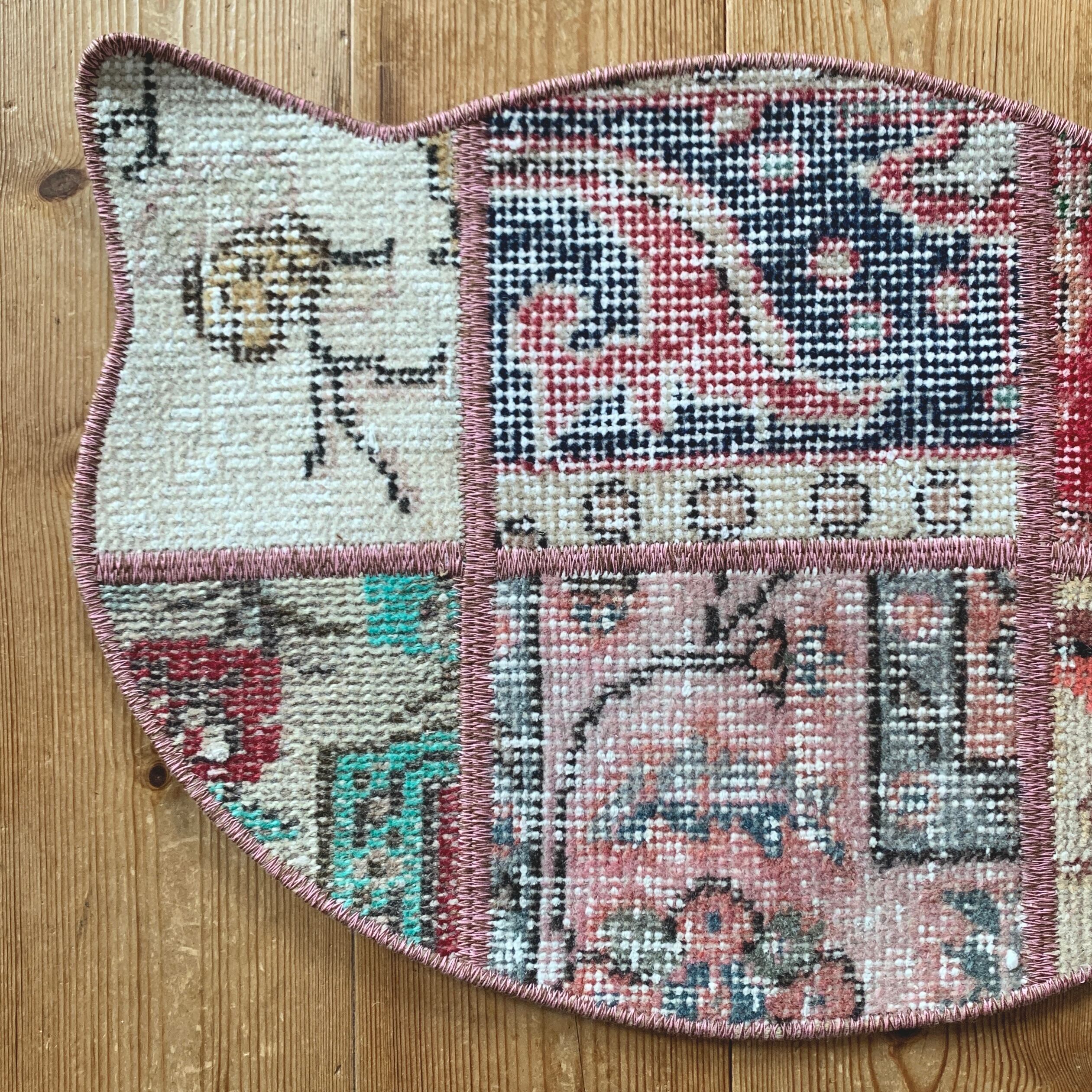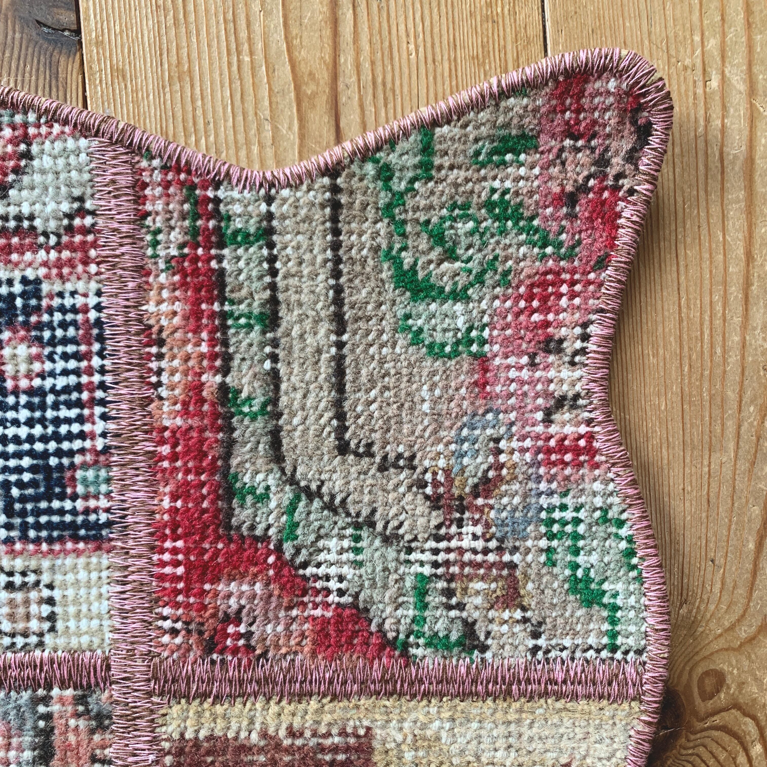 ※当店のパッチワークラグは、全て何十年もの間に渡って大切に使用されてきたヴィンテージラグを切り取り、手仕事で繋ぎ合わせて作られております。