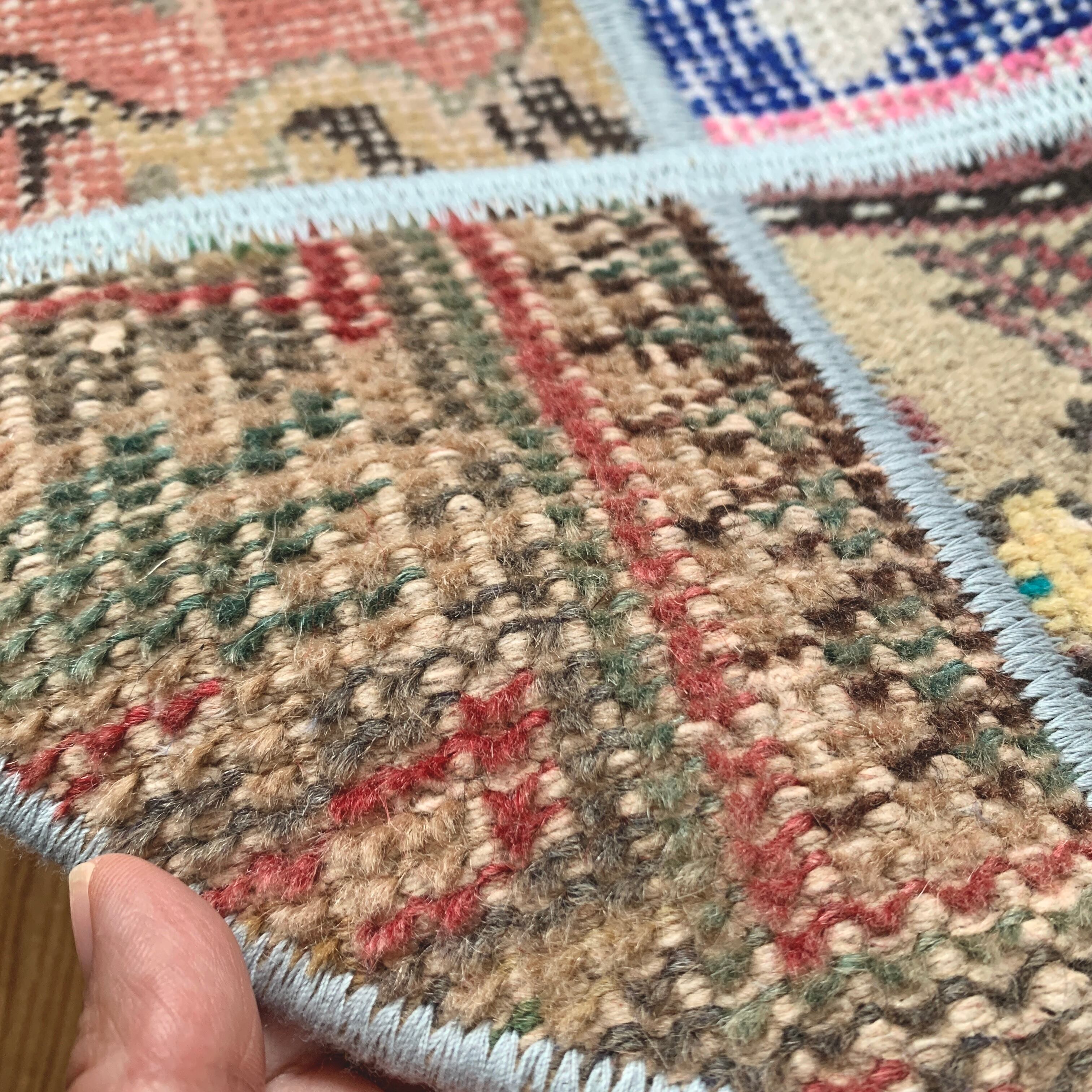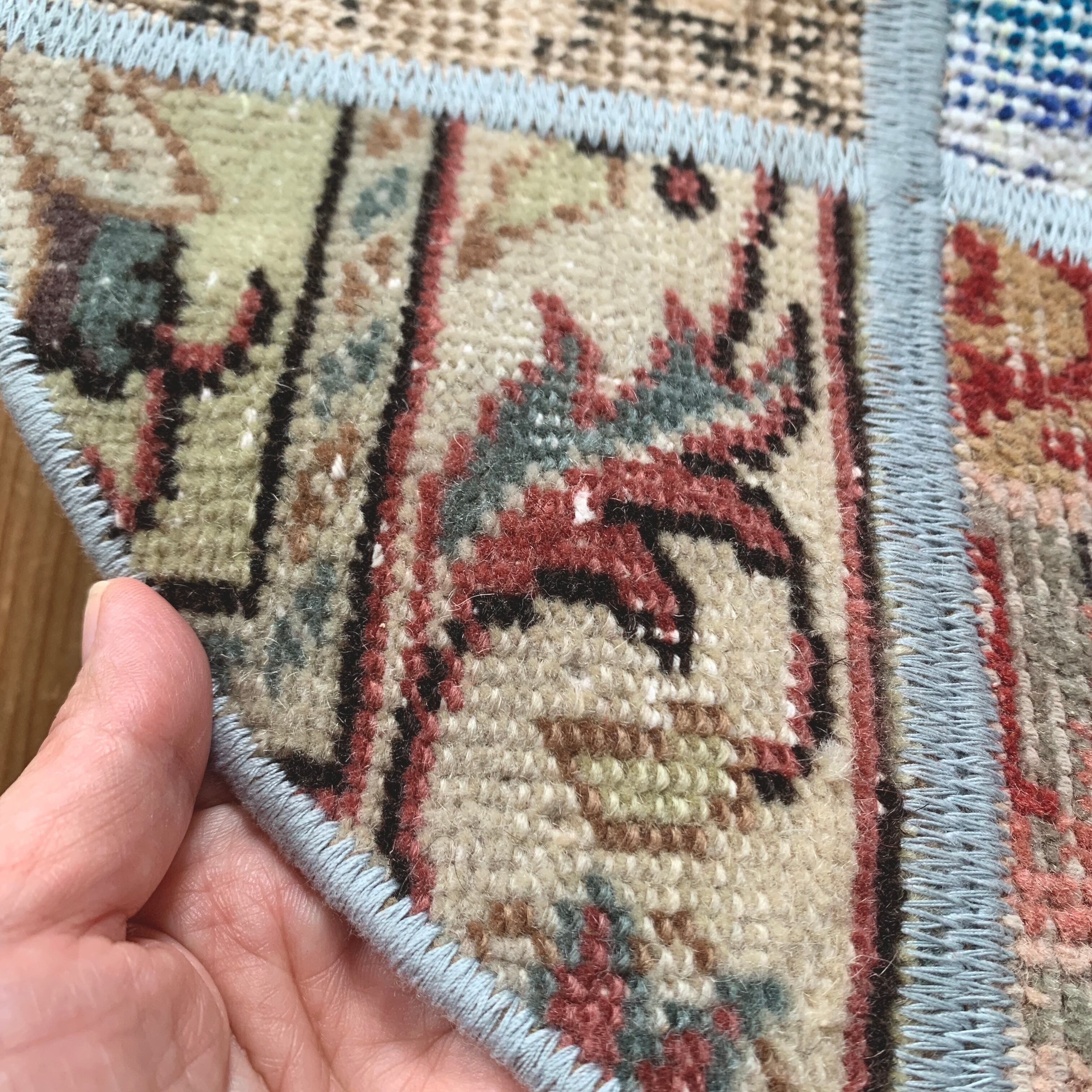 ※当店のパッチワークラグは、全て何十年もの間に渡って大切に使用されてきたヴィンテージラグを切り取り、手仕事で繋ぎ合わせて作られております。