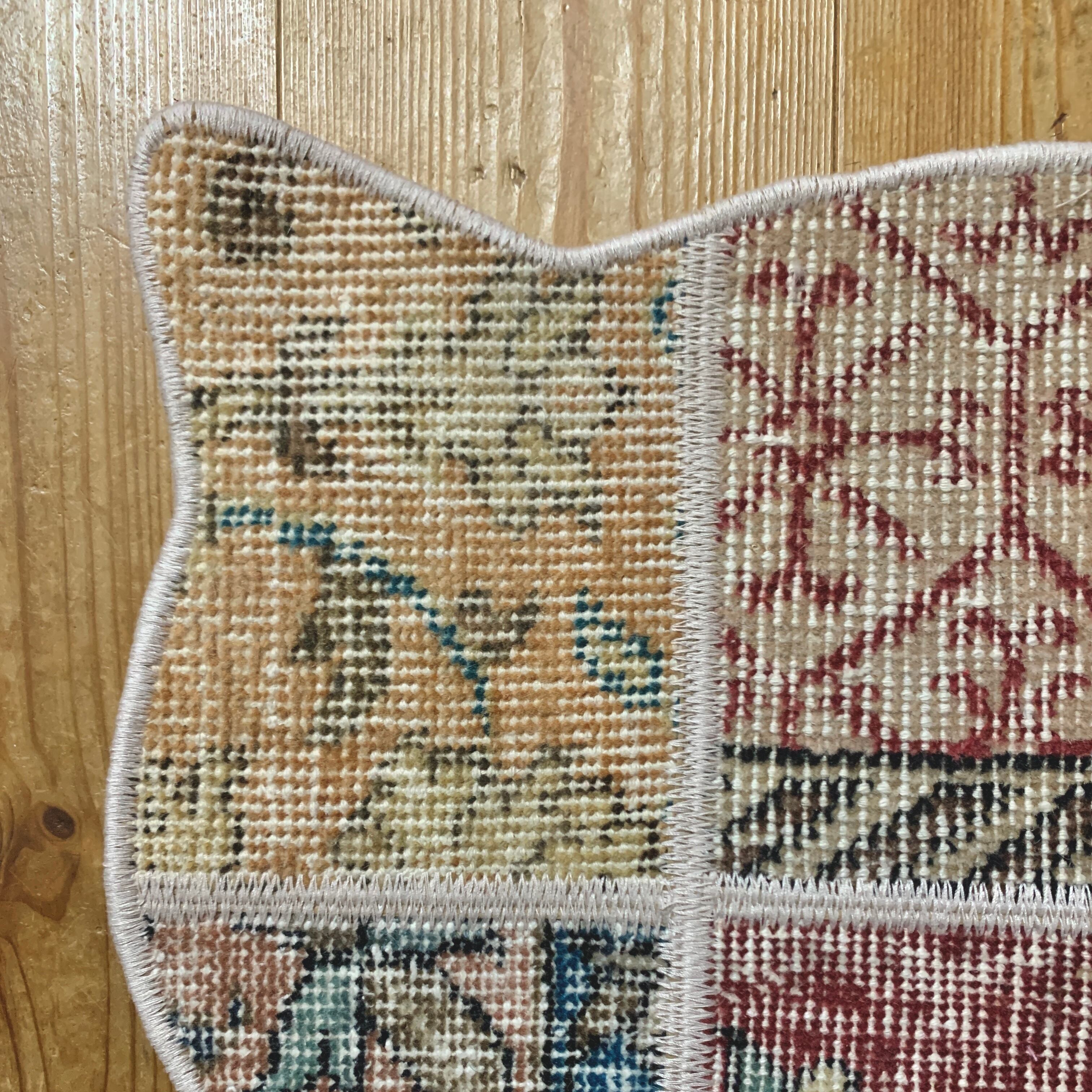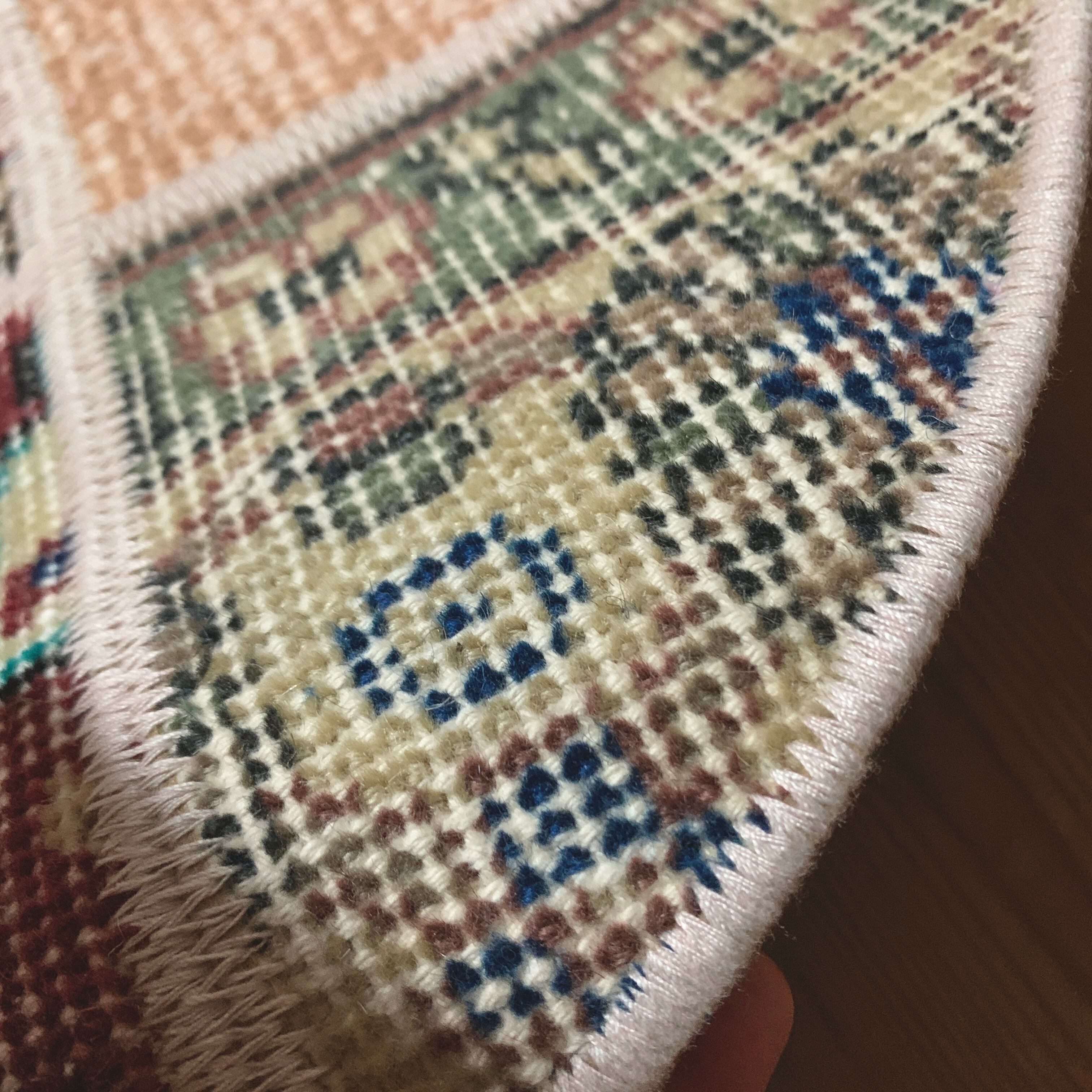 ※当店のパッチワークラグは、全て何十年もの間に渡って大切に使用されてきたヴィンテージラグを切り取り、手仕事で繋ぎ合わせて作られております。