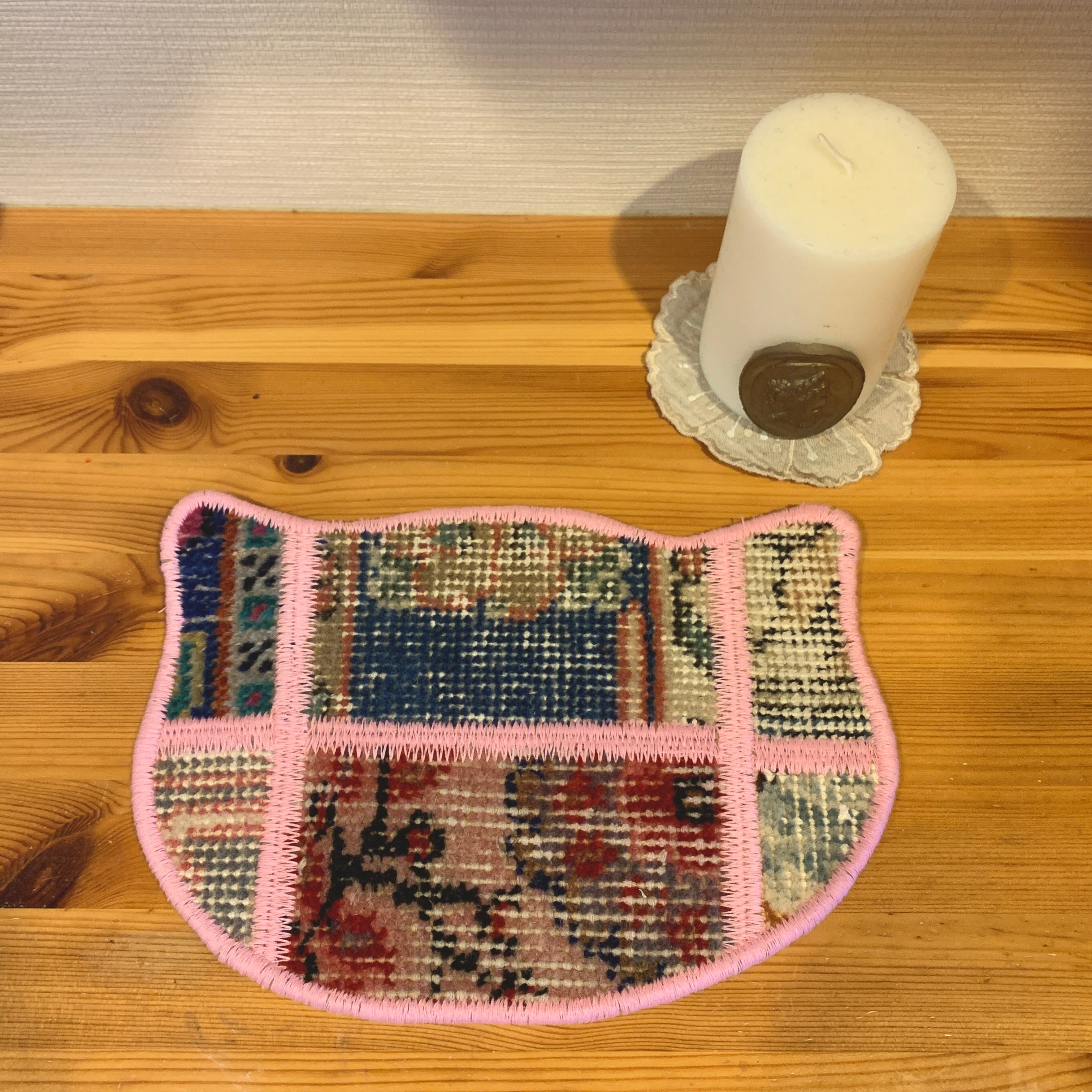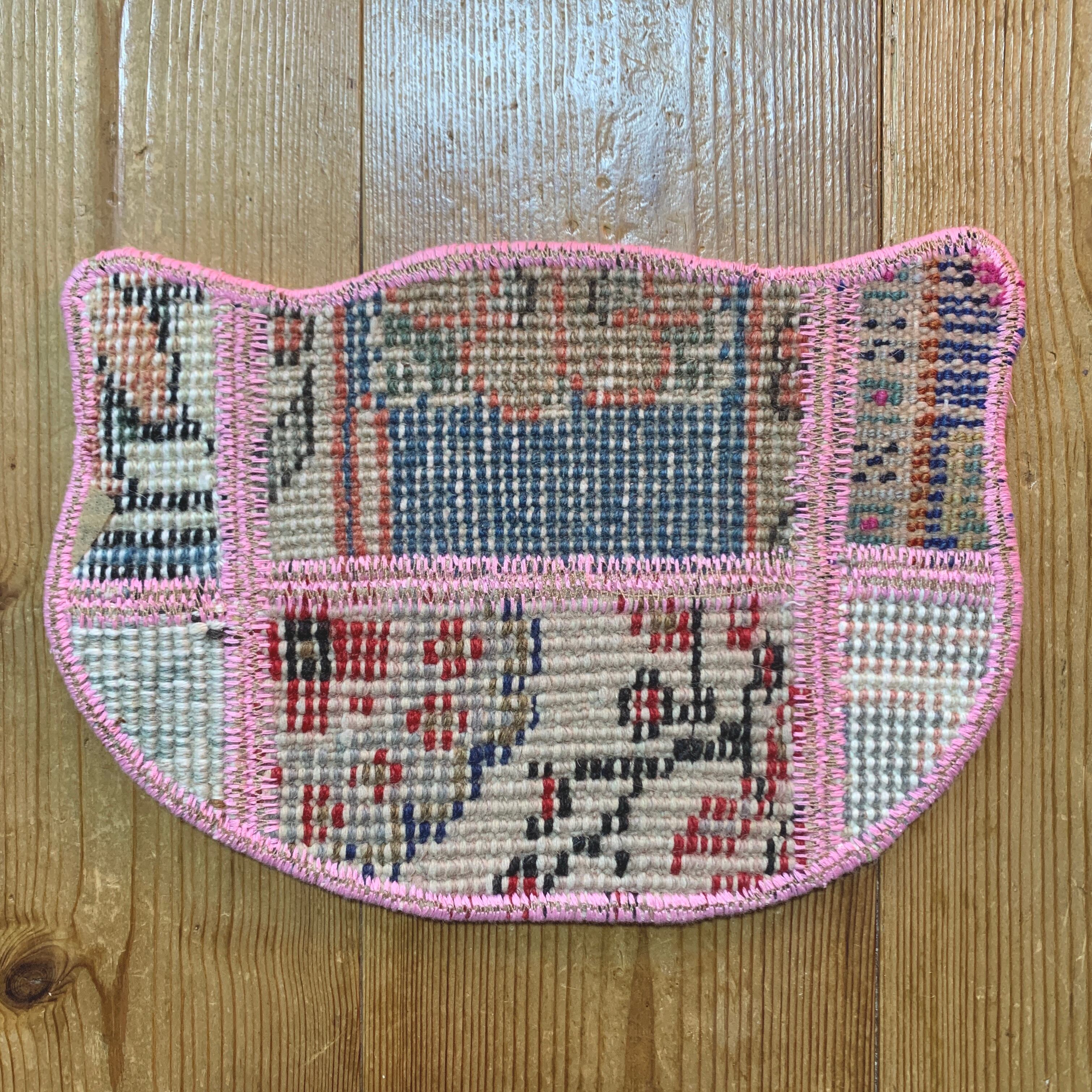 小さいねこ型のパッチワークラグ